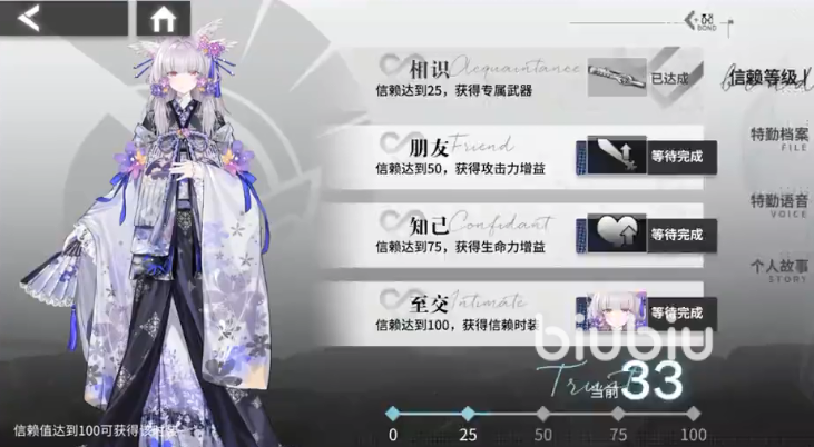 玩家可率先推图,推图可帮助玩家获取资源,也可获得黑金。黑金在游戏内类似货币抽卡,购买体力及道具购买皮肤都能使用。黑金仅限于前期使用,在主线任务逐渐变艰难,可以让角色先升级,而角色升级需要信用点和经验值,每日后勤保障任务中获取。主线支线任务均有经验值可提升,玩家也可通过此任务来完成。