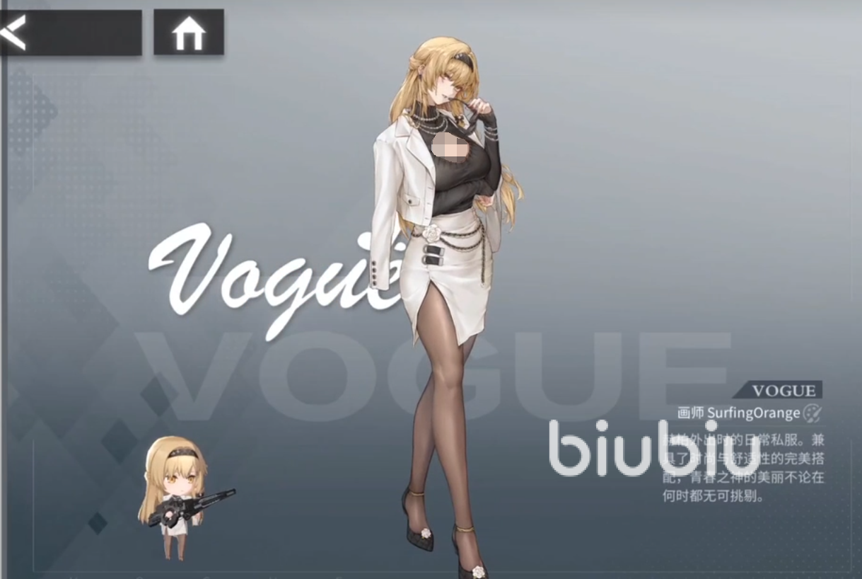 除了脸型变了以外,在皮肤中她的穿着也变了,从原来的战斗服变成了一套都市西装,这个女士西装的造型是非常好看的,除此之外她还带上了墨镜,换了站姿,这一整套下来让她的美感得到极速的提升,变得相当吸人眼球。