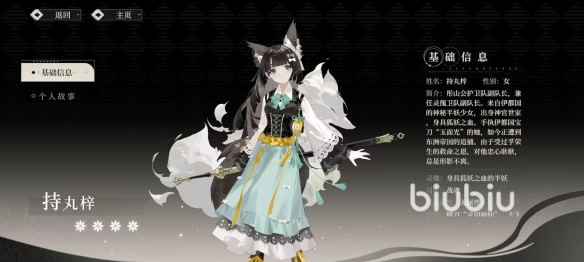 持婉梓其实指的是持丸梓这个角色,她是伊都国的神秘半妖少女,在神官世家出生,但是身上却有着狐妖的血脉,是比较经典额的半妖角色,同时她还担任伊都国护卫队副队长。她是战魂的职业,是比较擅长近战的物理攻击角色,那么她的攻击力和推移的系数都是比较强的。