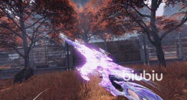 然后是大家比较关注的特殊处决动作,会有低头祈祷的动作,然后从背后绽放花瓣一样的光效,旋转的羽毛迅速加速,将敌人卷入空中后再重重坠地,整个过程很有仪式感,击杀的瞬间更是非常华丽且有压迫感。同新时装一起推出的还有两款枪皮,VSS圣光序曲和碎风圣辉裁决,前者会打出紫色的火焰,后者则是紫色荧光缠绕的近战。