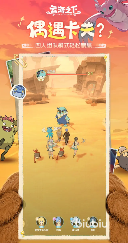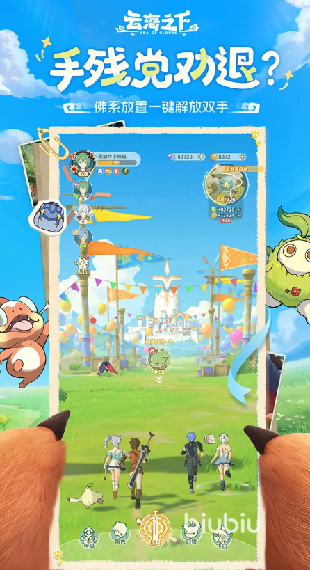 首先,需要明确的是,云海之下并未进行改名。它依旧是由那朵花文化传播有限公司倾力研发,并由盛趣游戏荣誉发行的一款休闲放置类RPG游戏。游戏以日式幻想冒险为核心主题,巧妙融入了标志性的吉卜力动画风格,精心打造了一个既清新明亮又充满奇幻色彩的云海大陆。在这片神奇的大陆上,玩家将有机会邂逅各式各样的“丑萌”幻兽伙伴,并通过培养角色、提升技能、收集装备和幻兽,来挑战强大的Boss,逐步解锁新的地图和剧情。