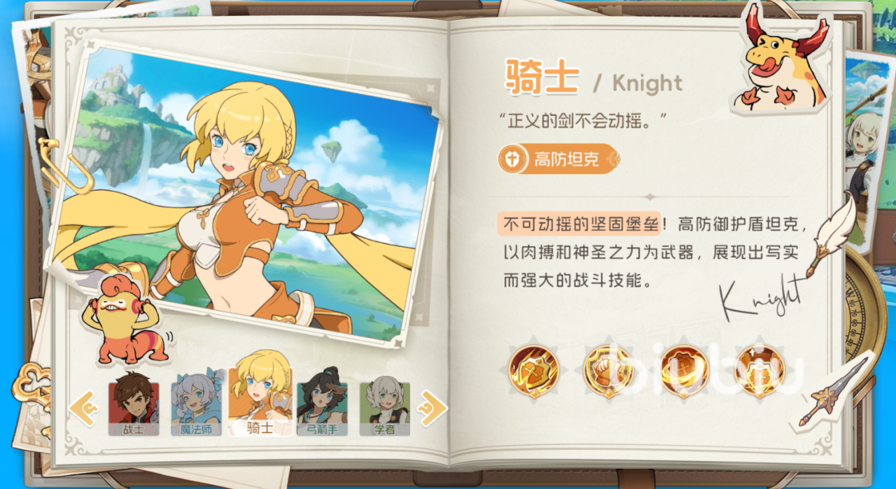 当然了,作为游戏攻略,小编自然会在这篇文章中先对各类职业做一个简单的介绍,帮助大家建立初步概念。首先为大家介绍的是坦克大类的职业:骑士和战士两个职业共同担任起坦克的职责。其中“骑士”以高防御和群体嘲讽能力见长,在实际的战斗中能有效吸引敌人的火力,然后为队友创造出一个安全又稳定的输出环境,是团队坚实的前排壁垒;“战士”则是具备着高血量和自愈的强力能力。因此该职业可以凭借高血量和自我回复这两个定级续航的能力,保证在战斗中能够吸收伤害的同时,也具备一定输出,可作为队伍中的副坦或输出补充。