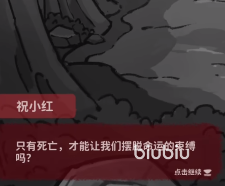 在被选为祭品之后,梁少平为了救她毅然决然的前往奘铃村,接着在阻拦献祭活动的时候不幸被奘铃村的村民给杀害。接着祝小红在得到这个消息之后,悲愤之下跳崖殉情。而我们游戏的第一章所穿越的时间就是在梁少平出事之前,我们需要先解救祝小红,然后和梁少平一起逃出奘铃村。