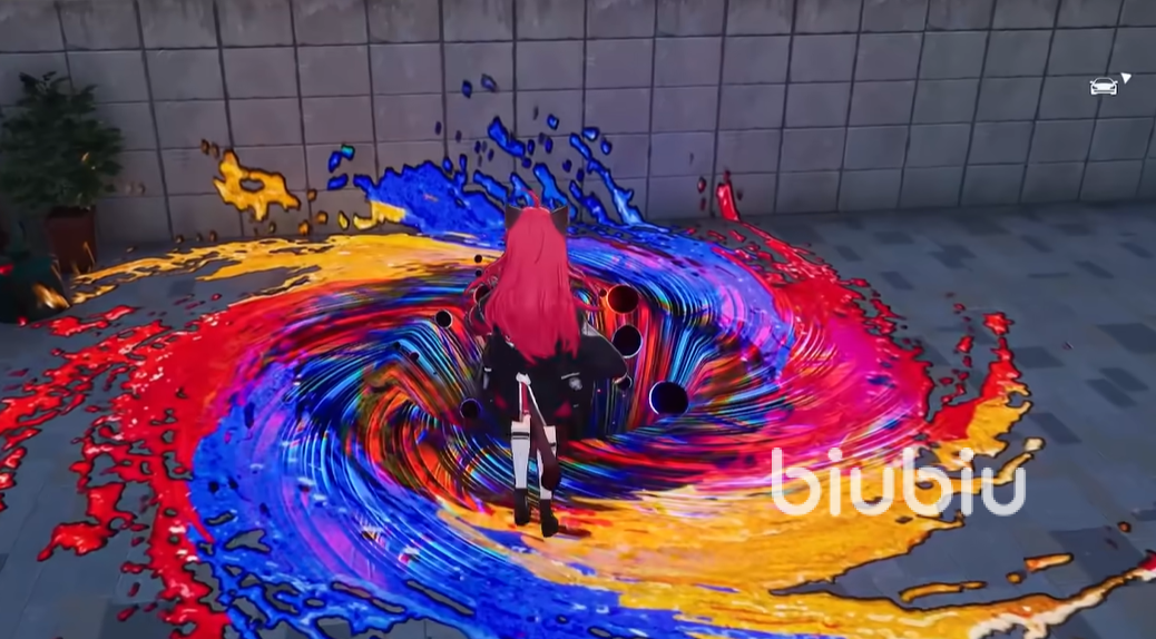 战斗结束之后就进入到了第二轮谜题中。找到右侧的滑梯,顺着滑梯往上走,在上方平台处找到并触摸游泳圈。接着沿着旁边楼梯往上走,到达顶层。玩家在此时要完成释放颜色的动作,从之后打开的门中走出来,这就意味着解谜部分即将结束。最后只需要走到场景尽头的讲台上触摸互动就可以完成“脑洞修复工程”的任务并获得相应的委托奖励。