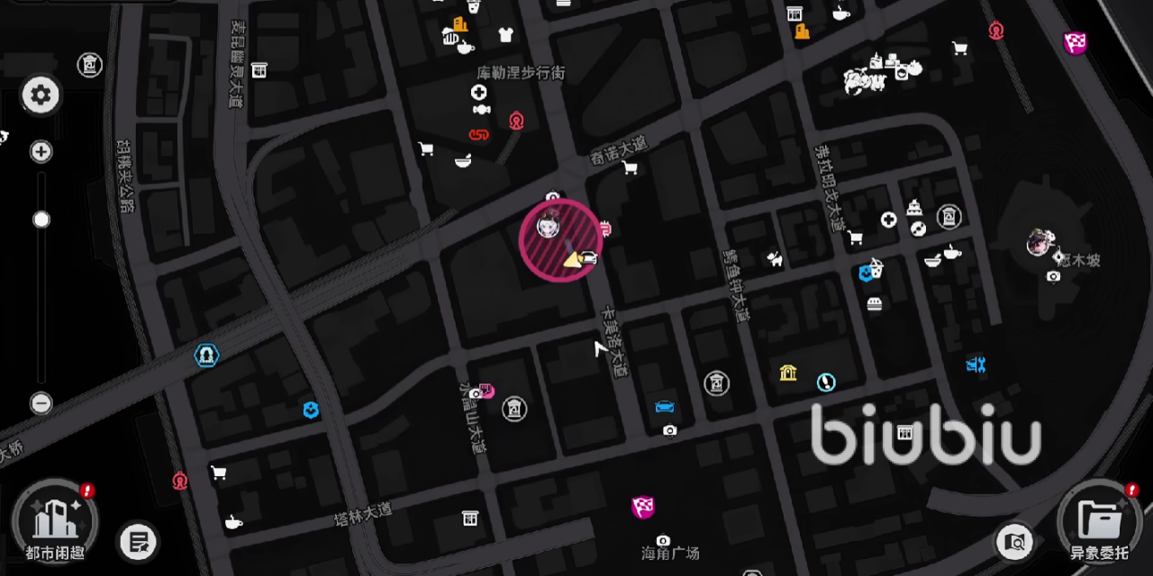 玩家在寻找兔子洞的时候不需要跑遍整个新赫兰德区,只需要打开游戏地图,先定位到新赫兰德区,再找到奇洛大道的标记。当玩家到了奇洛大道直接来到核心区域,这时候会看到浮冰影院的入口。玩家先要清理杂兵,接下来就直奔入口。