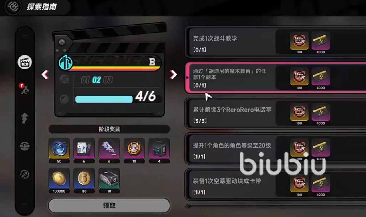 第四就是探索指南,探索指南当中区分为好多个章节,而大部分都有解锁电话亭条件,每个章节奖励都相当丰富,跟着引导就能拿到大量经验;第五就是清空体力刷副本,40体力能拿到200经验;然后提升魔女之家等级,和魔女对话,用收集的谕石就能提升等级。