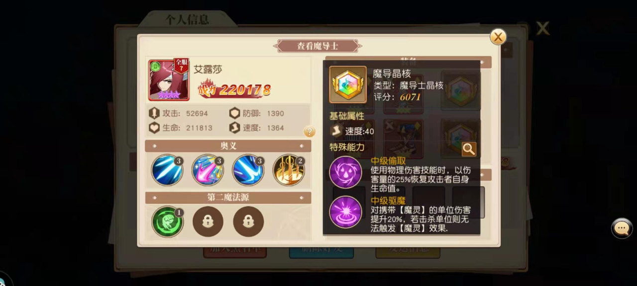 卡娜是属于热血系的救赎型魔导士,作用的可以为队友恢复血量和增加状态,俗称奶妈,所以在选择晶核和魔法源的时候,也要注意突出辅助方面的属性。