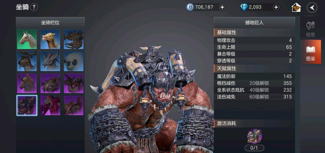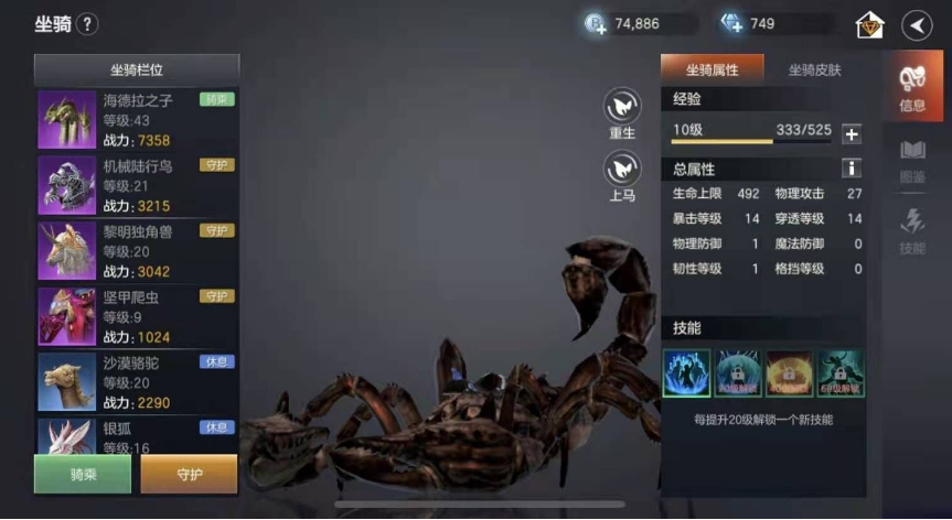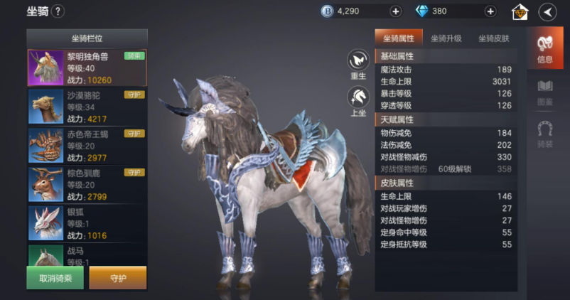 玩家得到坐骑以后还可以对坐骑进行升级,突破坐骑的上限数值,同时坐骑也有自己的专属装备哦,这就要靠玩家在游戏中慢慢摸索了。