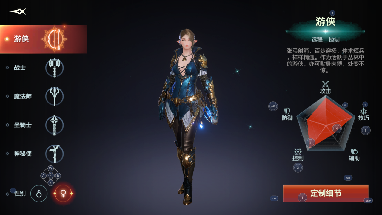 目前游戏中一共有五个职业,分别是游侠、战士、法师、圣骑士和神秘使,这五个职业算得上是各种MMORPG游戏的标准配置职业。游侠主要负责远程攻击和控制;战士负责抗伤害和输出;法师则专职输出;圣骑士是在战士的基础上再增加一个回血效果,只不过单论抗伤害和输出来说没有战士好;最后的神秘使是这款游戏中的奶妈,专门来给队友回血的。
