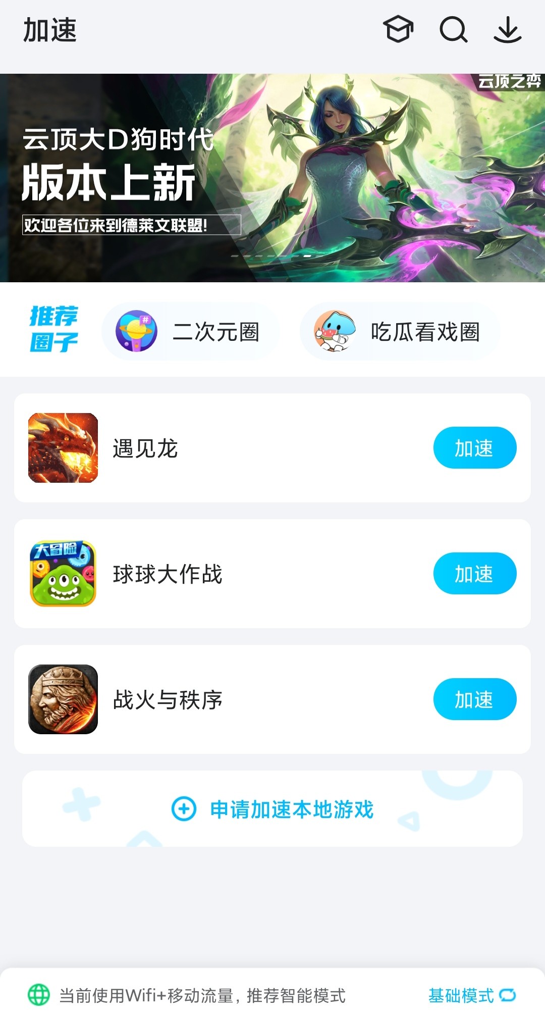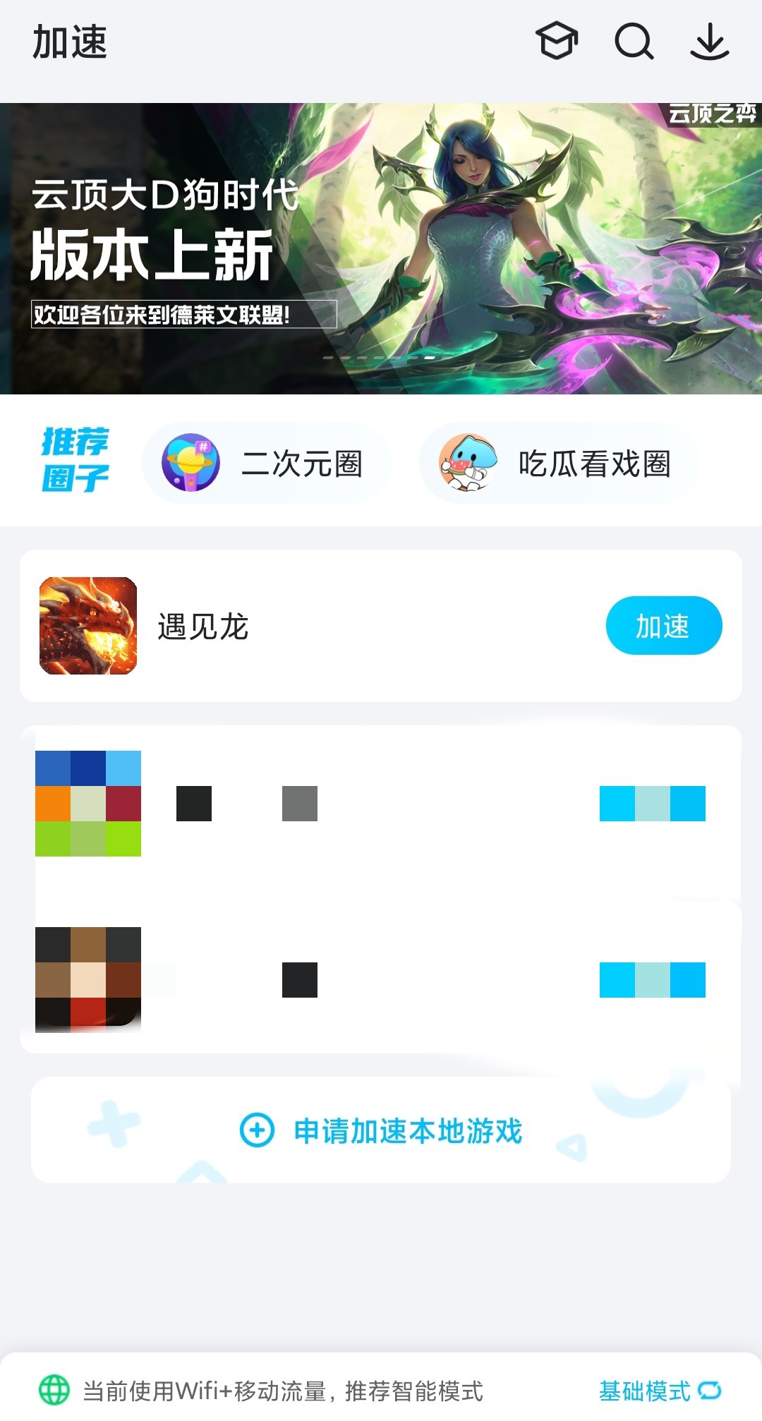 完成安装之后,玩家们可以选择左下方的加速按键,然后点击遇见龙右侧的加速就可以加速打开我们的遇见龙游戏了。