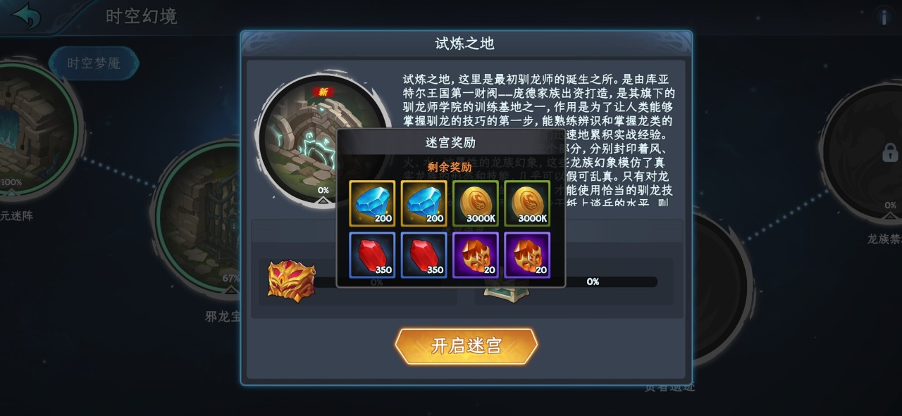 2021年11月07日 23:46 来源:沐雨遇见龙手游中的时空幻境奖励丰富,尤其钻石很多,对初期玩家来说是不可错过的秘境之一,但其难度还是比较大的,不少玩家想了解遇见龙时空幻境攻略。今天小编就介绍下时空幻境的通关攻略。