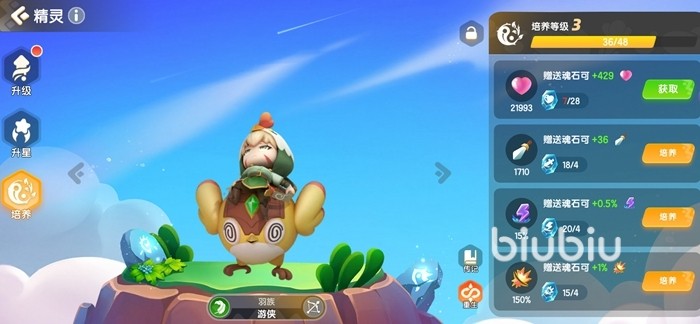 精灵培养是花费精灵魂石对精灵的特定;前排精灵推荐优先点生命、抗暴、受疗加成。