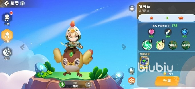 当精灵的等级到达当前星级的上限,玩家需要提升精灵的星级才能继续升级,升星后精灵可以获得很大的提升。目前,游戏中抽取到的精灵分为初始五星精灵、初始四星精灵、初始三星精灵。初始三星和四星的精灵升到最高星级后,解锁三个技能,而初始五星精灵最高星级则可以解锁4个技能。