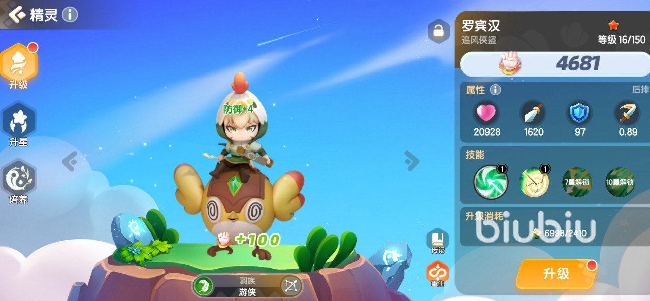 精灵升级是精灵战力提升最直接的途径,每提升一级可以直接提升精灵的攻击和防御。但是,每个精灵升级都需要干粮,很多玩家的干粮都是不够用的,提高队伍战力要优先升级后排精灵。