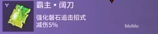 之后可以改变阔刀第一段和第二段的蓄力招式,可以让其附带火焰特效;之后是第二个紫色魂玉,该魂玉装备后可以给到5%的减伤,之后会改变磐石追击的特效,改变后可以直接蓄力放出第三段蓄力的蓄力攻击。