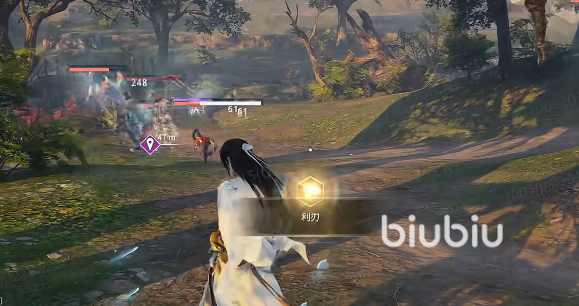 之后的二技能也就是其奥义,奥义释放的时候他会获得身法加成,过程中可以来回穿梭速度非常的快,比玩家正常使用闪避要快的多,在这个过程中他会使用飞刀连续攻击对手,攻击时自身还会处于霸体阶段。
