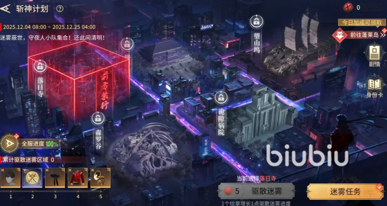 12月4日到12月25日会限时开启“斩神计划”活动,在这个期间只要去完成任务,收集“守夜人纹章”,驱散各个位置的迷雾并累计进度,可以免费领取到林七夜联动时装、发型等丰厚免费奖励。