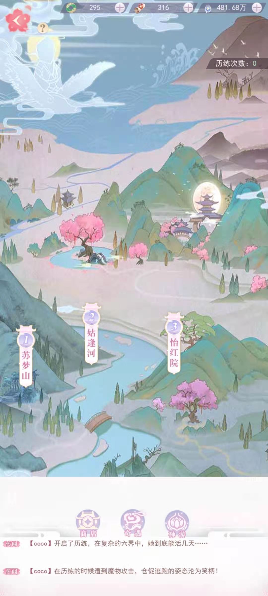 第三种获得方法,妖精游历,在仙园中的血元草旁边就可以看到游历,点进去就可以派出只有的妖精进行游历,等级不同派出的妖精数量不同,一页可以派出三个妖精,不同的妖精获得的东西也会各不相同,派出去一次需要等待不定的世界,等他们历练回来会给玩家带回奖励,固定的奖励是元气,其他东西都是随机的,这边也有概率掉落奇遇灯。