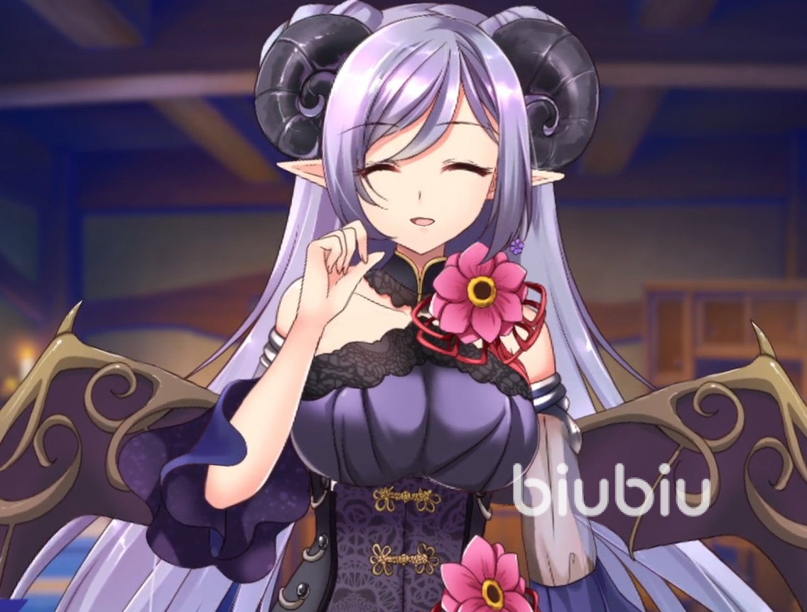 之后要介绍的这位角色相信大家多多少少都认识,因为这位角色目前来看担任着游戏看板娘的位置,她就是阿莫尔,她是一个魅魔种族的角色,拥有魅魔标准的羊角设定,身着紫色礼服长裙拥有一对蝙蝠翅膀,还有一头紫色的长发,她的技能情况目前不能得知,因为没有放出关于她技能的消息只知道她的背景故事,她原本是一位魔国女仆,但是因为一些原因她选择了支持前代勇者,但是前代勇者在讨伐魔王的过程中失败了,这给她带来了很大的打击,之后人类和魔王君发起了战争,她作为协助人类的一方秘密保护着前代勇者的伙伴魔法使,在保护的过程中魔法使身下了一名孩子,这个孩子被选中成为了现代的勇者,阿莫尔陪着现代勇者长大并且在之后加入了勇者部队。