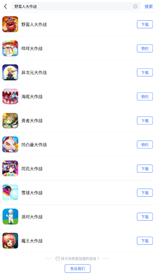 在biubiu加速器的搜索框中输入野蛮人大作战,下方就会显示相应的游戏包体,选择下载即可获取游戏。