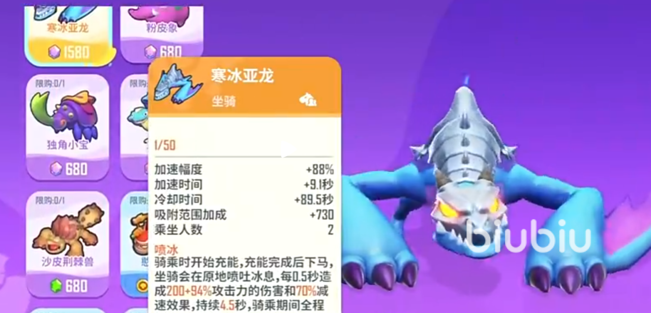 坐骑和宠物能带来特殊效果,如果是准备氪金的建议选寒冰亚龙,它有着范围性的减速,方便在战斗时风筝敌人,零氪推荐选魔化猪牛,它会向前冲锋,对冲击到的敌人造成伤害和眩晕控制也有不错的帮助,宠物的话推荐选肥头大鹅或冰霜饿龙。