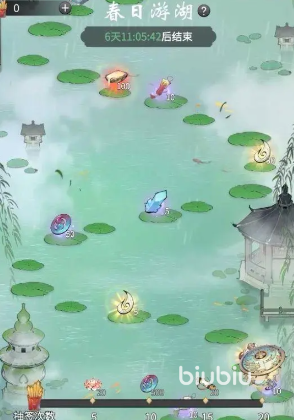 然后就是春日游湖的走棋的活动,类似抽奖的活动,在这里玩家可以抽到自己需要的各种天材地宝,都是玩家需要的而各种的材料,在这个修仙的世界里面属于必不可少的东西。