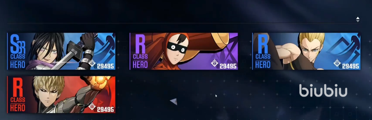 首先是排行第一的英雄角色他就是埼玉,埼玉是原作的主角拥有一拳秒杀敌人的能力这是他的设定,不过因为这个设定属实变态所以到了游戏中对这个设定进行了抹除,如果不抹除这个设定那对其他角色是很不公平的,不过就算抹除了设定埼玉依然是目前游戏中最强的角色,在实战中哪怕没有秒杀机制的埼玉的技能都能打出逆天的伤害,他的连续普通拳和认真拳在攻击一些boss时打出的伤害有着相当出色的效果。