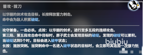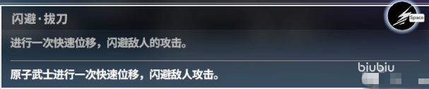拔刀作为原子武士特有的技能,不但攻击力十分惊人,同时附加效果也非常强悍,在攻击敌人的时候效果非常好,也有不少玩家会将拔刀当做储备技能,在躲避敌人技能后使用拔刀,不仅不会浪费时间,还可以造成更高的输出效果,不过在PVP的时候,拔刀的使用较少。