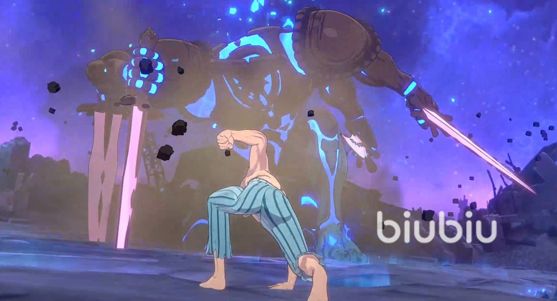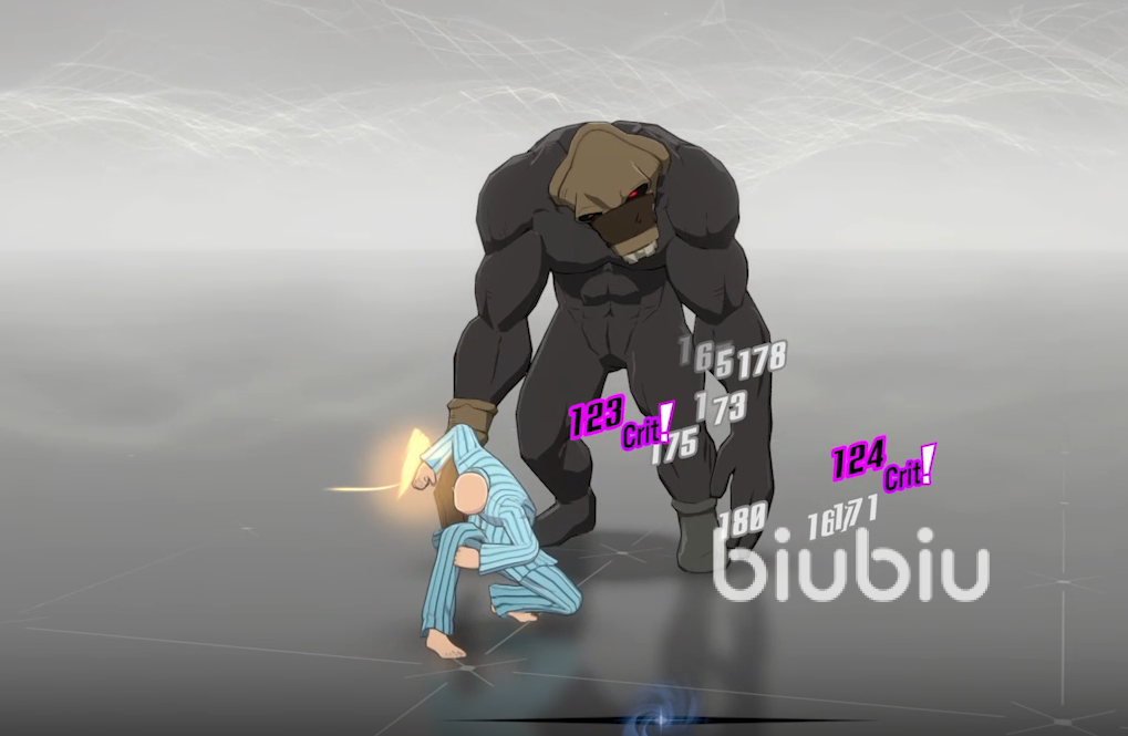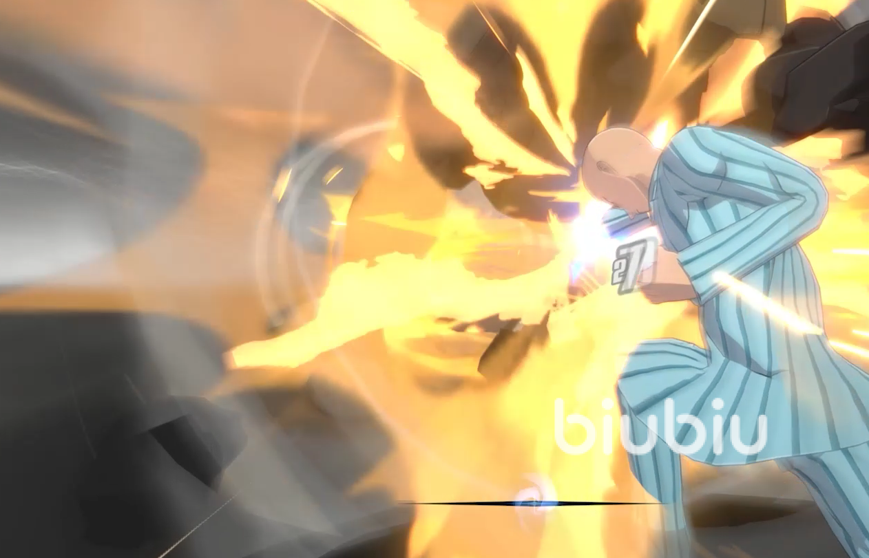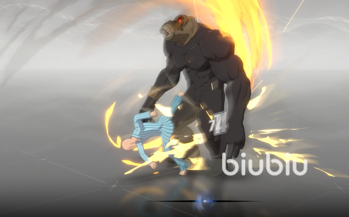 他的二技能的话,同样是有着两段效果。平常释放的话就是朝着敌人进行攻击,并且向下用腿扫一下。之后进行闪避的话就会往前冲刺,然后对敌人造成攻击。接着把别人挑飞,并向下发动强大的攻击。所以说这个角色他的技能其实变化挺多的。而且也能进行多段伤害。只不过缺点的话就是爆发有所不足,小技能用来清一下小怪还是很不错,如果要让它变成完整的琦玉,像动漫里一样一拳就将敌人击败的话,还是要靠大招。