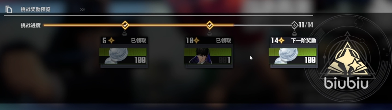 在大家挑战社畜的特殊拆蟹法这一章节时,可以打开挑战奖励预览选项,就能看到三个阶段的奖励,这三个阶段的奖励分别是100英雄币、埼玉死鱼眼求职者和100英雄,也就是说,大家想要获得埼玉死鱼眼求职者这位英雄,只需要完成第二阶段的挑战就可以了。