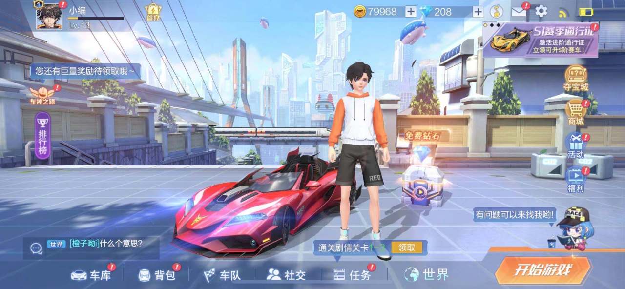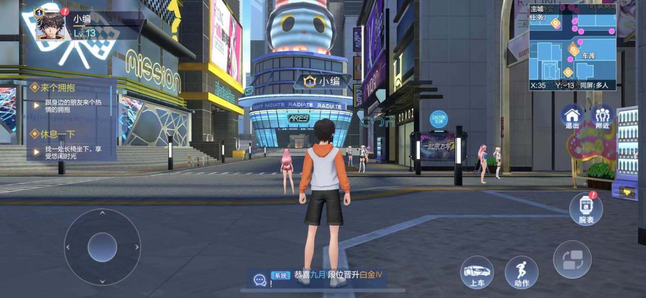 1、根据一起来飞车2游戏规则中,主城是作为玩家疲惫之余进来与其他玩家一起互动的场所,对于前期玩家可以通过主城内认识很多新玩家,一起组队,一起完成任务。