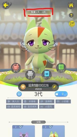 每只猫全都有归属于自身专门版面,打开随意一头猫(以这只萌的三代猫为例)猫头顶这串大数字是复原时间。