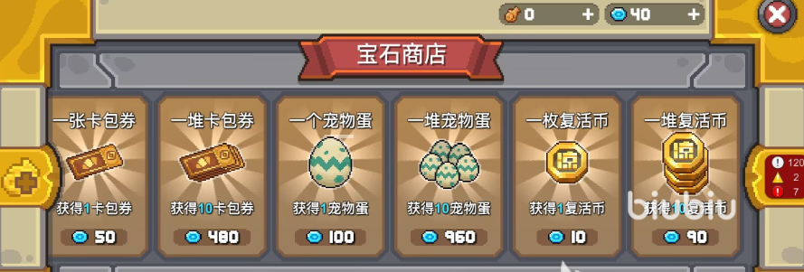 蓝币可以在宝石商店内购买卡片,这些卡片能提供不同等级的宝石,但是这些宝石的属性是完全随机的,因此建议玩家们准备好足够多的蓝币再进行购买,否则购买一两次出不了货的话会比较麻烦,其次就是购买宠物蛋,宠物蛋孵化的宠物也是完全随机的,不过基本上只要能孵化出来就有作战能力,可以购买一两次。