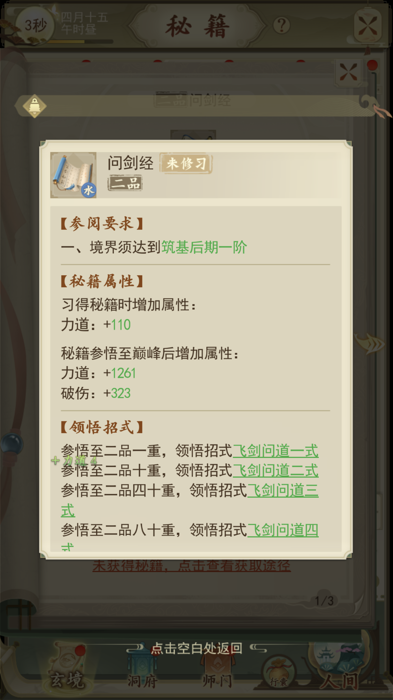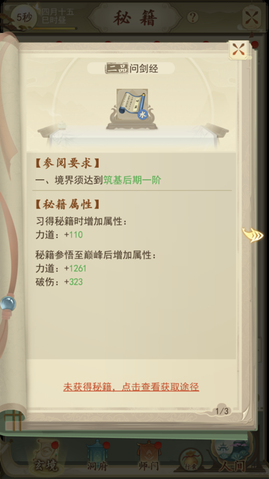 2.玩家可以在自己门派的藏经阁获得,但是,这也是有一定的刷新几率。