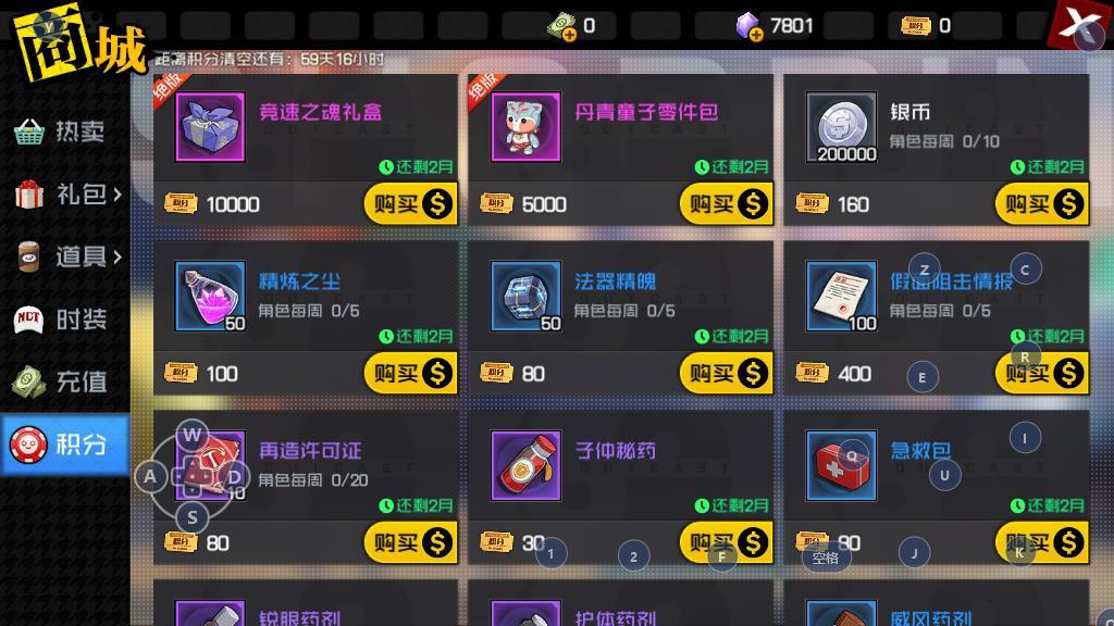 以上方式是目前游戏中仅有的积分获取途径,当玩家有了足够的积分之后,就可以在商城中购买自己想要的道具了。这里大家要注意一点,积分商城的道具是会周期刷新的,虽然说存在的周期很长,但是刷新之后积分也会随之消失,所以大家要注意,可以避免不必要的损失。