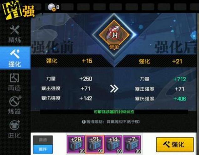 因为当你的装备级别总是提高,次次平常加强顺利的几率同样会渐渐减少,当装备+15后,加强战败后便会进到“封闭”玩法,仅有运用增强套件才可以将其解锁。