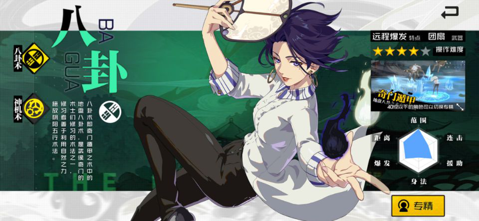2020年06月28日 19:34 来源:尓笠一人之下中每个初始人物都有独特的特点,最近好多人问起一人之下手游八卦怎么样?八卦术是女性角色武侯奇门的转职分支之一,技能兼具远程与爆发,扇子武器更能形象的说明她的术法高明。