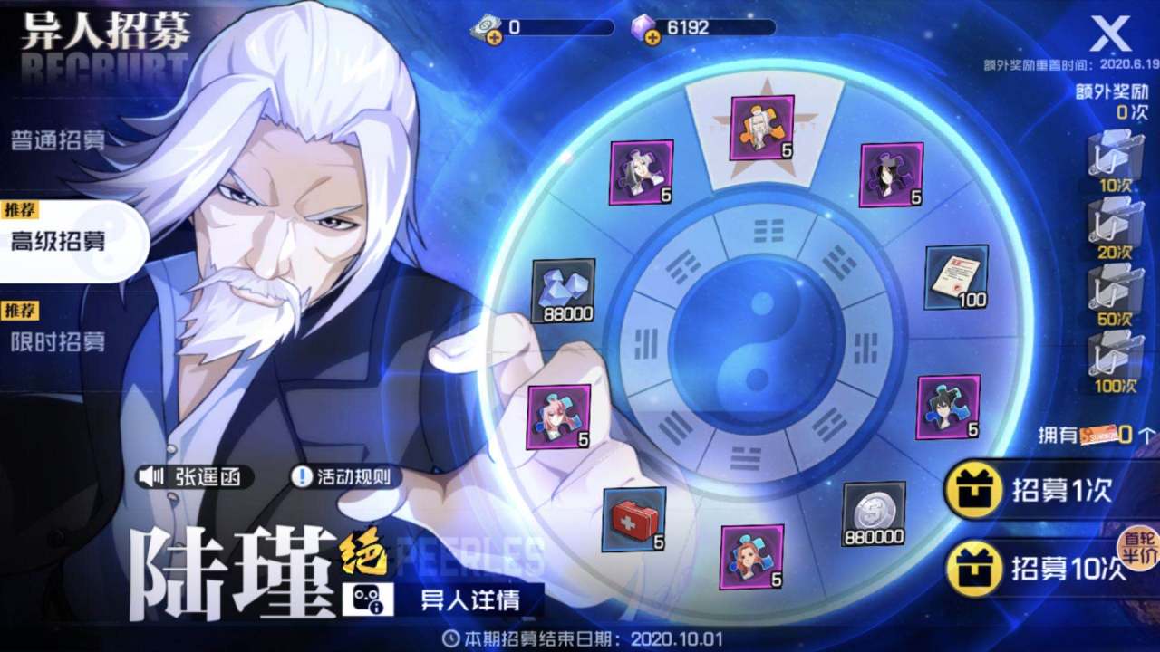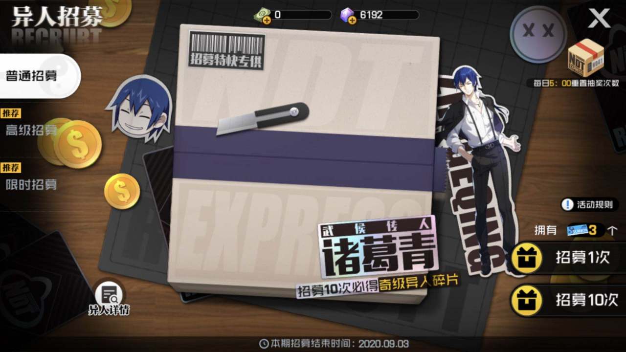 普通招募:普通招募每10次招募必定获得一个奇级别的角色碎片,但是普通招募也会有限时角色,就是这个角色出现碎片的概率会高出很多,好处就是普通招募的成本低啊,活动送招募券,还有每天都可以抽一抽,万一运气好呢?