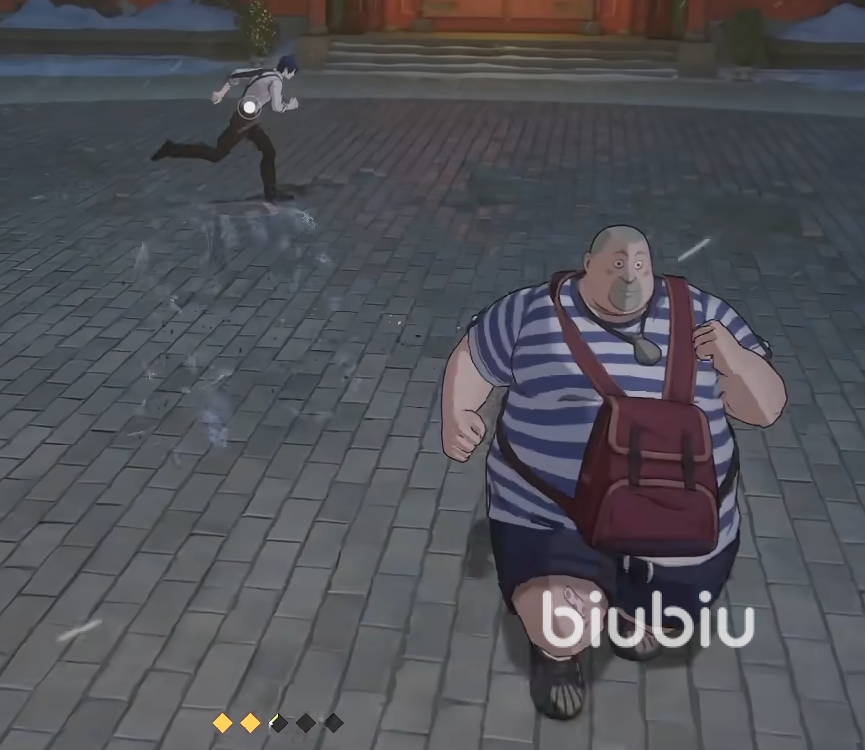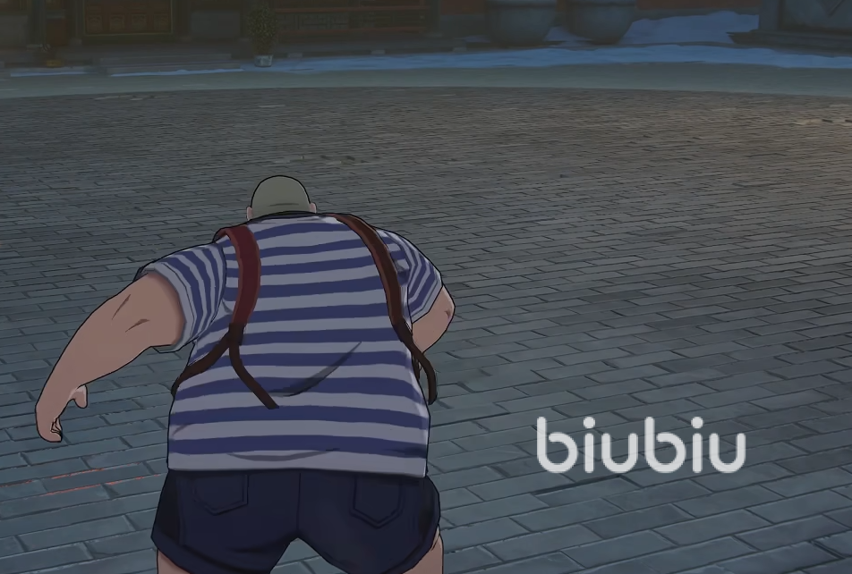 这位角色从表面上来看是非常的肥胖,从样貌来看定位应该是坦克类型的角色。这个角色的普攻是对着前方进行三连击,这个攻击的速度是真的很慢,但是攻击力够高,同时攻击的范围还比较大。在攻击完毕后会掏出锤子然后将对手给击飞。这个攻击习惯了快攻的玩家或许会觉得有些不太适应。