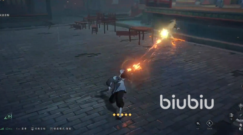 1技能“回莎踏”,发动后会向前打出2拳以后再以踢击收尾,全程是带有位移效果的,前两下平推最后一下把敌方直接击倒,可以稳定兼容他的平A连招,在第3下打出之前取消也能继续连击,这个招式的特性,在周围有离字·凝炎时可强化技能,施法时粘上火堆就会直接将火吸收,随后打出强力一击,最后一踢会变为险招,这个范围也会得到不小的加强,被敌人主动触发是无法强化的。