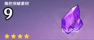 关于材料,首先要带大家看的是这角色突破所需要用到的材料,这位角色想要突破到90级的话,材料方面需要准备18个幼齿、30个坚齿、36个利齿,一个龙像的无智核、一个最胜紫晶、9个紫晶块、9个紫晶断片、1个紫晶屑。