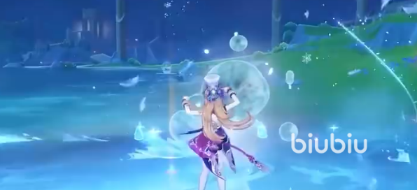 她的大招会对敌方造成大范围的冰伤,并且直接治疗全队,最后还会附加一个持续9秒钟的缓慢治疗,她的被动能在战技或大招命中时,根据队伍中冰或水角色的数量来削减敌人对冰、水的抗性。