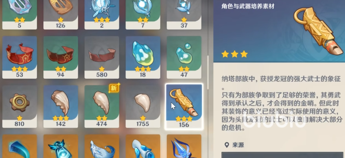 武器突破材料需要纳塔的深邃拟覆叶掉落的“蜷叶之心”,以及部族龙行武器掉落的金哨了。副本材料是神合秘烟的启示,可以在周三周六周日刷取。