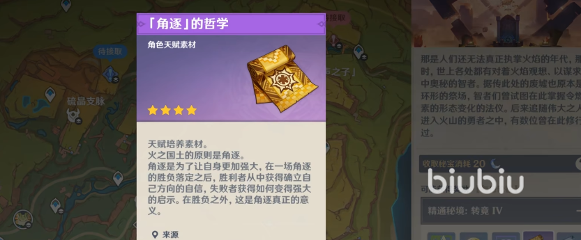 BOSS材料则是来自纳塔花羽会的“深邃纠缠的凝视”。然后是天赋书,需要刷纳塔的角逐,每周一周四周日可以刷取。周本材料则是来自5.6版本更新的“待解弈局”。