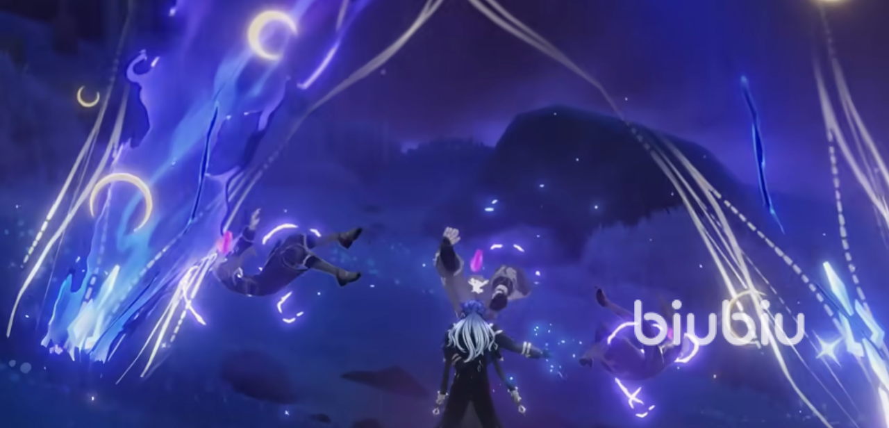 他的被动“寒冬”会根据队伍的月兆,来获取对应的强化效果,满辉会让自身触发的月感电伤害提升20%,他的“幽焰”会让自己的元素精通提升,提升的量相同于攻击力的8%。