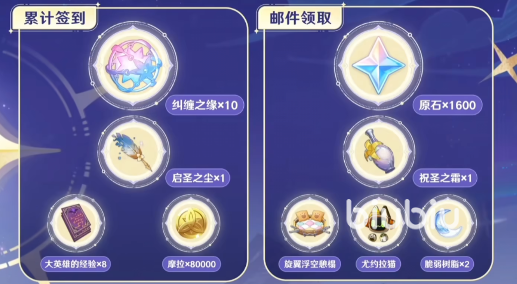 作为五周年庆版本,6.0预计会带来大量实用回馈内容,包括但不限于:常驻五星角色自选,预计会加入“梦见月·瑞希”等新的候选。登录奖励包括纠缠之缘、1600原石、小龙跟宠、专属道具等。首充双倍奖励重置。活动免费赠送新四星角色或武器。