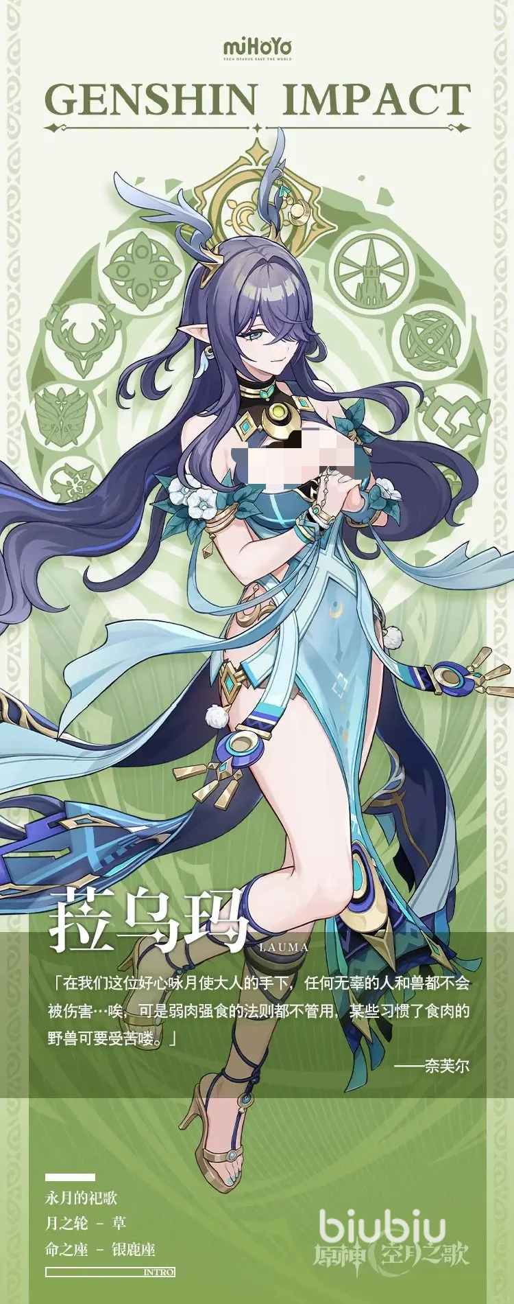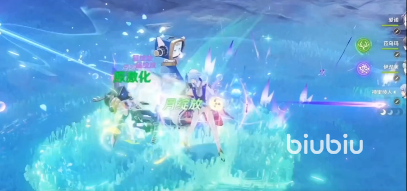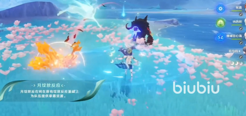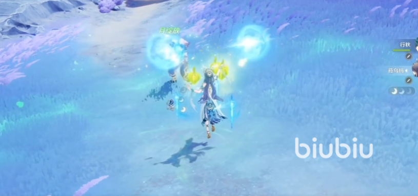 根据消耗数量,每个草露还能获取1层“月咏”,长按使用元素战技,可通过该方式使用3个草露;在元素战技或其他招式攻击命中,敌方草元素和水元素抗性会降低。在拥有“月咏”时使用元素爆发,或在使用后15秒内获取月咏,会将其使用掉,并根据层数,每层能获得6层”苍色祷歌”。