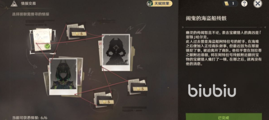 之后正式开始游戏,在游戏开始后大家可以进入到情报交易的页面,在这个页面上大家可以看到串联在一起,大家需要去收集的情报,在看到这些情报后接下来需要根据情报的指引去进行对话,过程中需要先前往秘闻馆。
