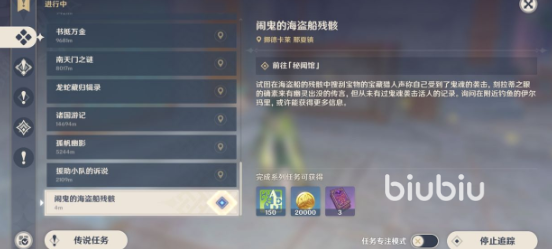 完成了闪光点的调查后,继续前往沉船上在上面还有多个闪光点,这些闪光点全部需要探索,完成探索后,接下来需要回到秘闻馆位置,然后可以触发额外的任务,这个任务需要玩家找到祖潘与其交流接取,之后按要求完成任务就可以拿到线索了,这么一来就完成了现阶段的收集了。