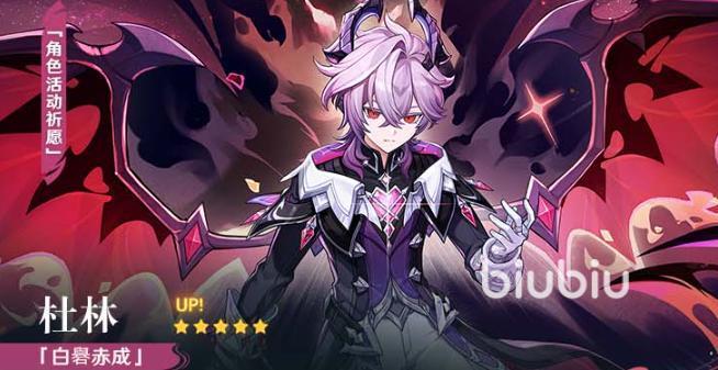 先是卡池角色的情况,上半是杜林+温迪,下半是瓦雷莎+希诺宁。杜林,在前瞻定位中可以看得出来,他是一个火系的后台辅助,能挂火,有拐,并且还有两种形态,一个黑龙一个白龙,不同的形态技能效果也有所不同。